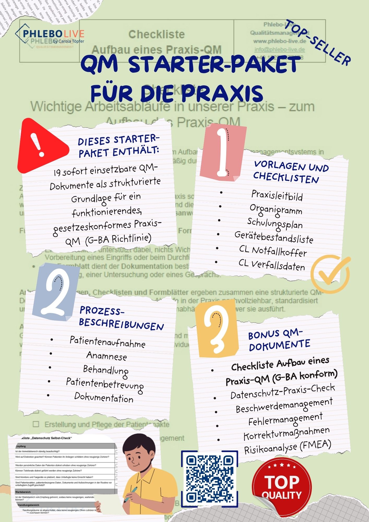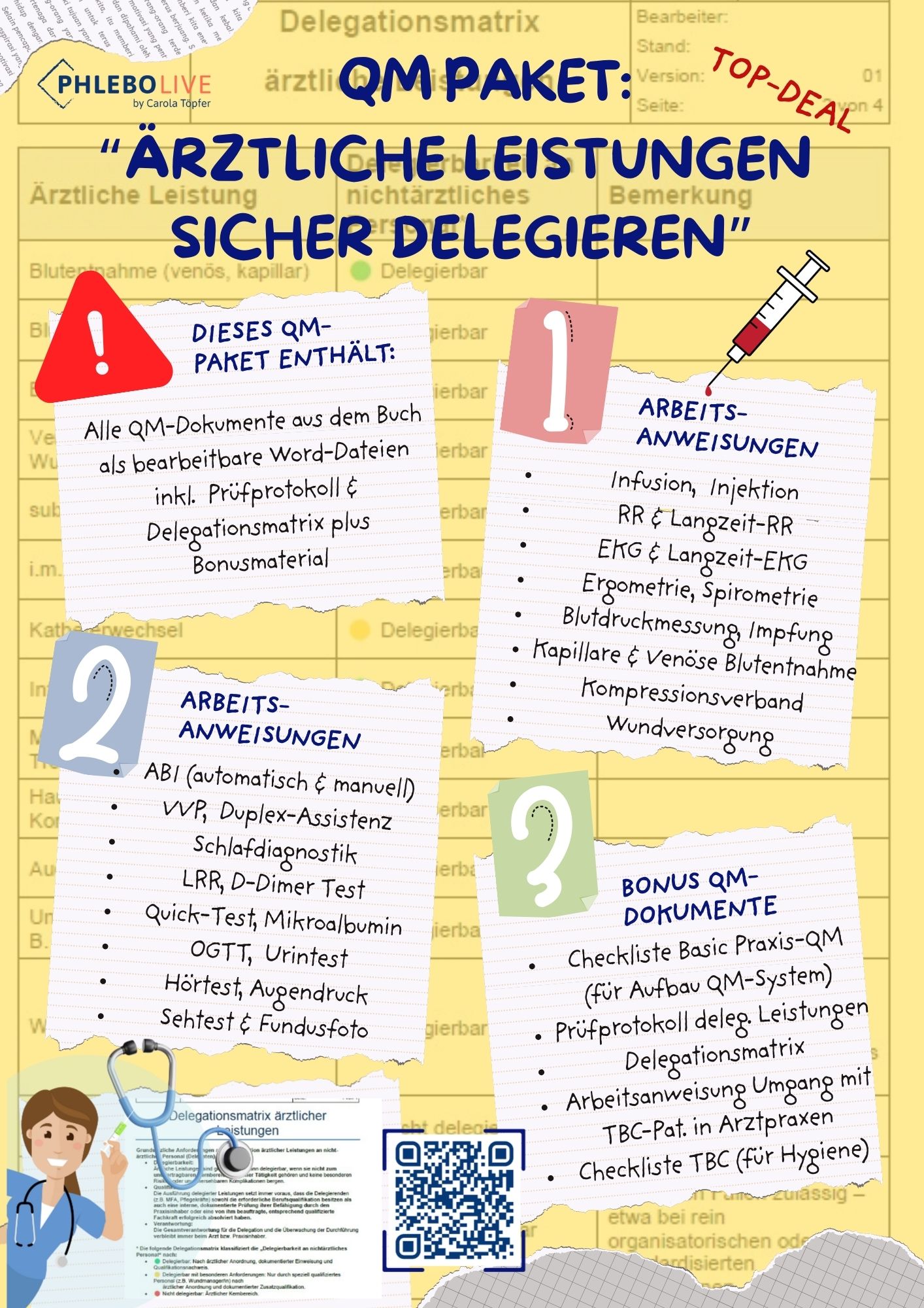 Geprüfte, praxiserprobte QM-Vorlagen für Arztpraxen – vollständig ausformuliert, sofort ins QM-Handbuch integrierbar und ideal für die rechtssichere Delegation ärztlicher Leistungen.